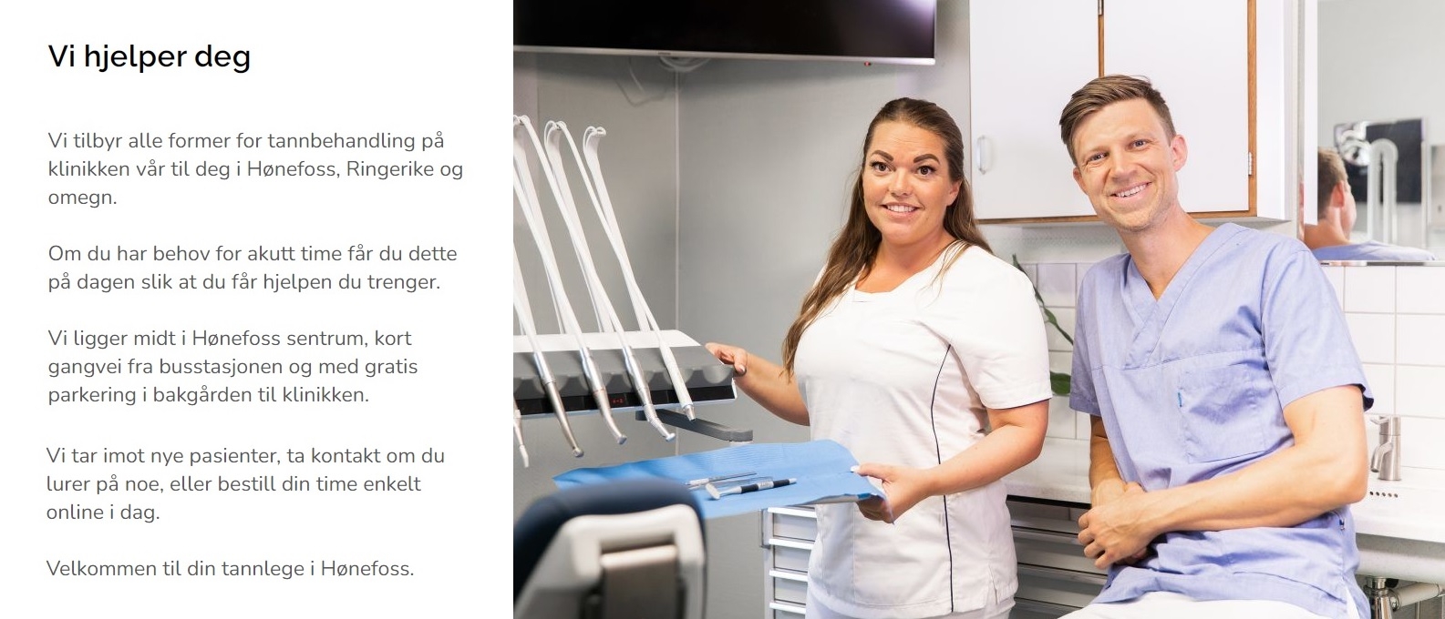 Vi tilbyr alle former for tannbehandling på klinikken vår til deg i Hønefoss, Ringerike og omegn.