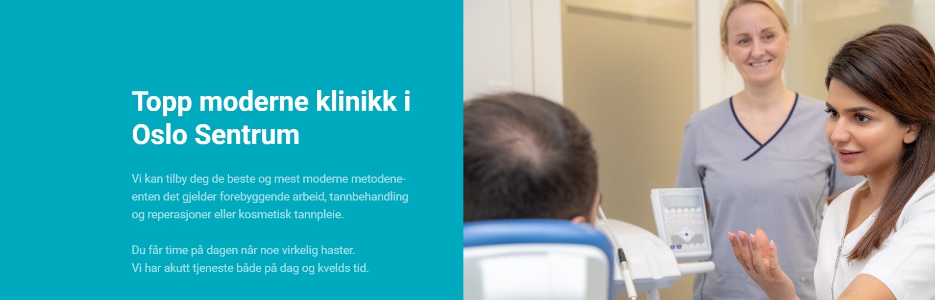Sentrum Tannlegesenter er en topp moderne klinikk lokalisert 2.min fra Grønland T-bane eller en steinkast fra Oslo Plaza og Oslo Spektrum. Vi kan tilby deg de beste og mest moderne metodene-enten det gjelder forebyggende arbeid, tannbehandling og reparasjoner eller kosmetisk tannpleie. Du får du time på dagen når noe virkelig haster.